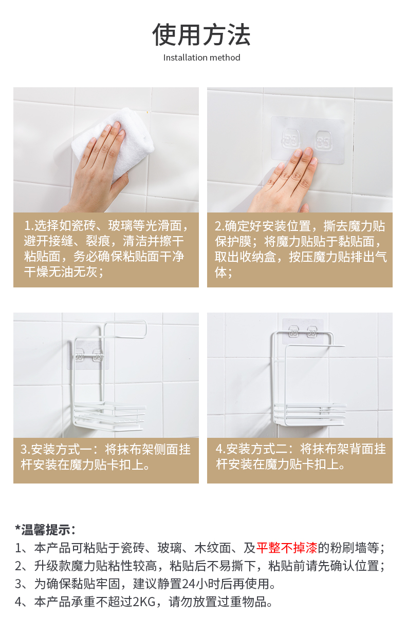 2、兩種壁掛方式:搭配魔力貼,根據(jù)需求選擇壁掛方式