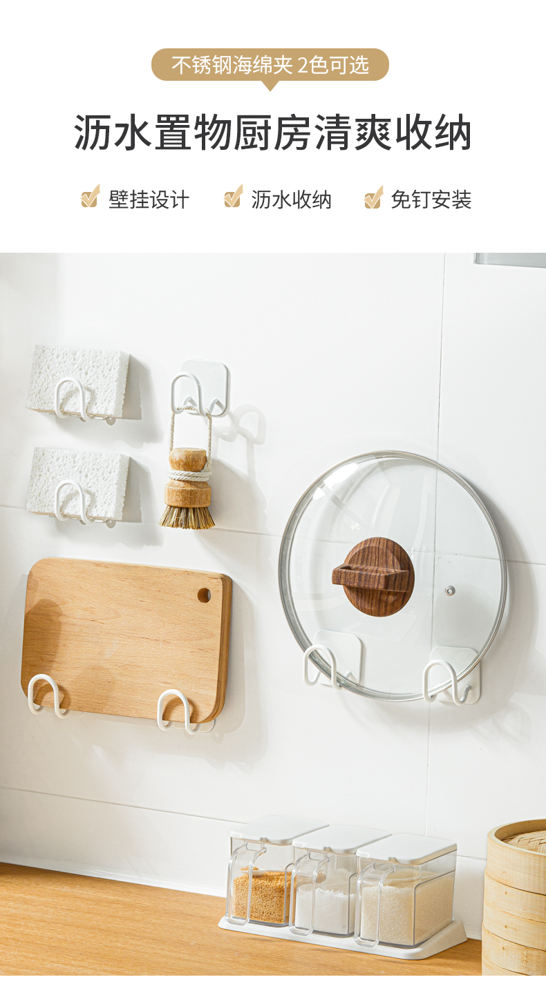 1、多用收納:收納厚度3CM以下海綿、水槽蓋等