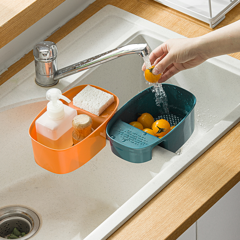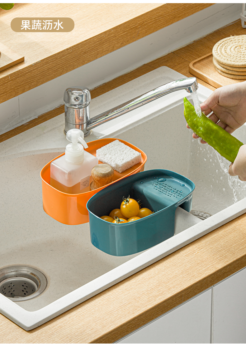 1、多用設(shè)計:瀝水籃和置物盤,收納多種小工具