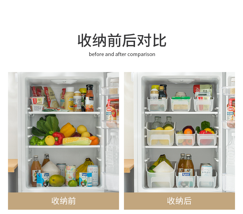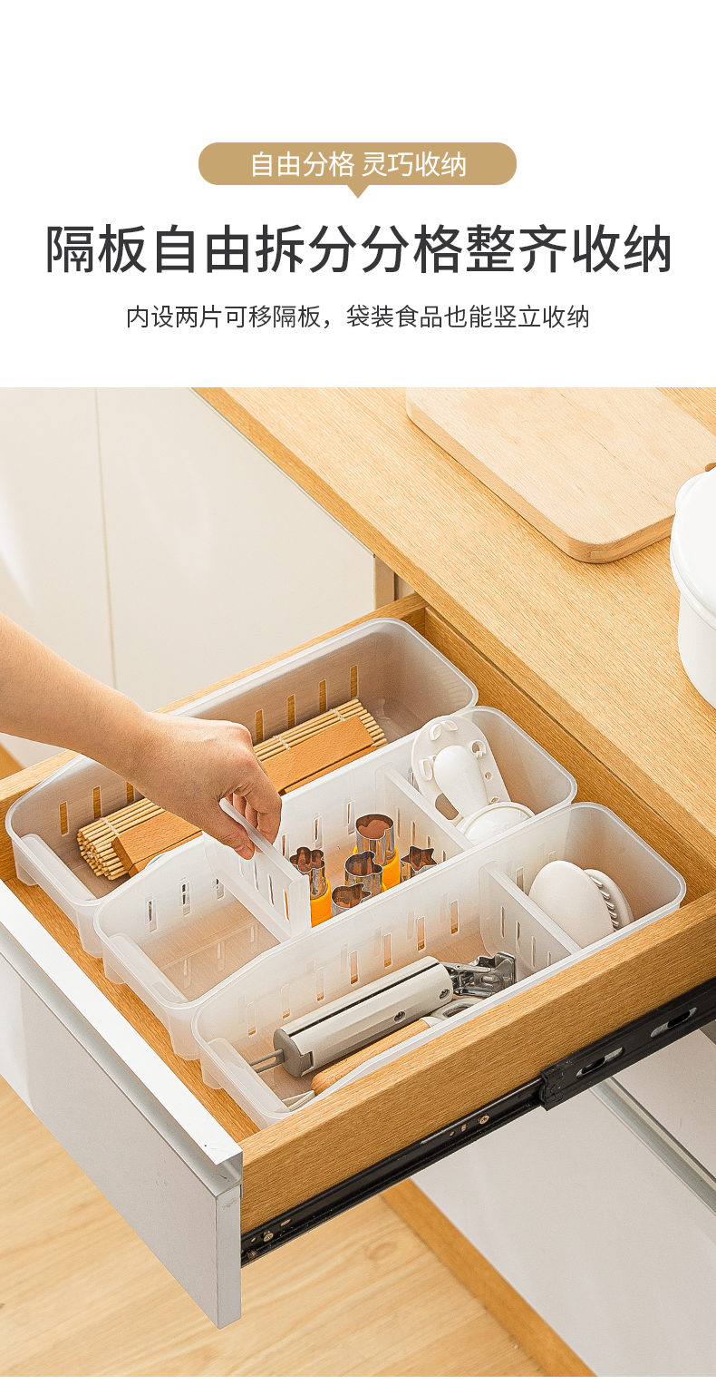 2、自由分格:內(nèi)設(shè)兩片可移隔板,袋裝食品豎立收納